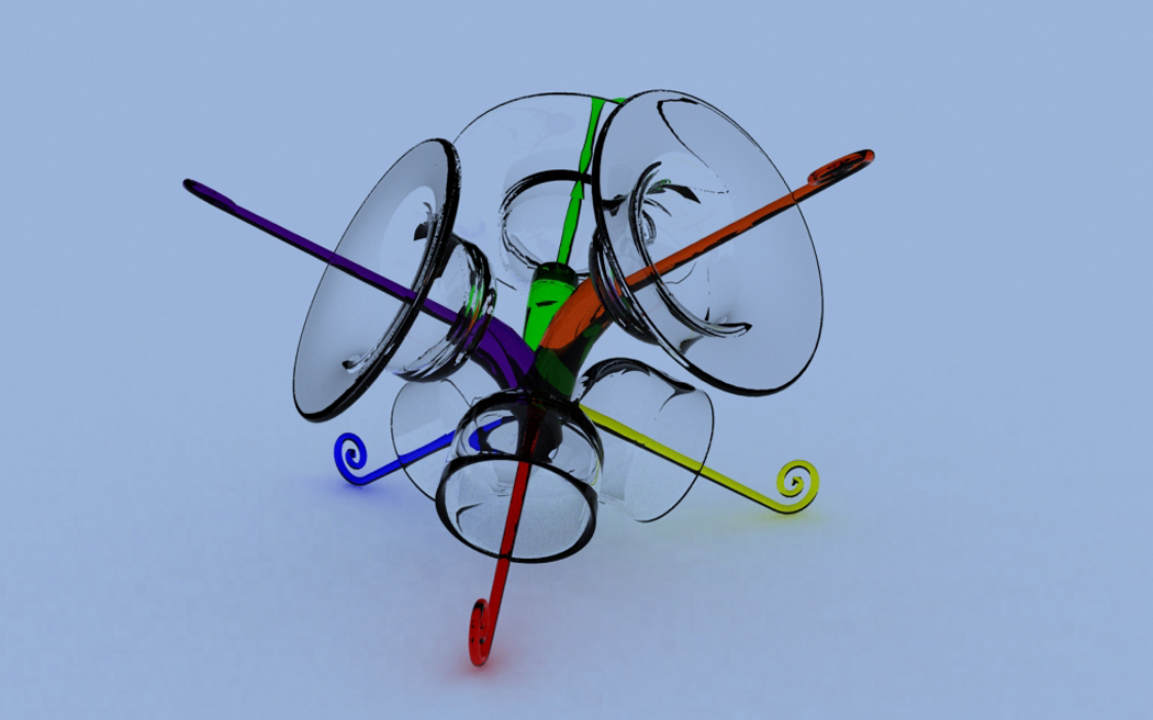 Wall Thing 1 August 9, 2003 Studio Max, Brazil Rendering As this is physicially impossible to make, the dimensions twisted in on themselves, if it were real, I'd put it on my wall, dimensions and all! |