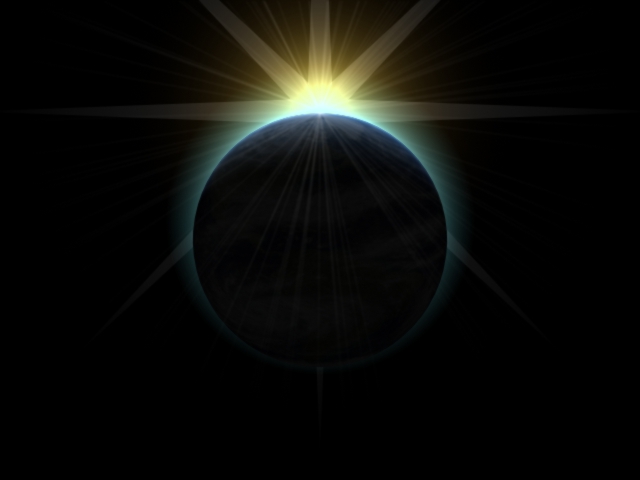 Earth 3 November 25, 2002 Studio Max Sunrise over Earth. Aptmospheric test. One of my favorite scenes to make. |