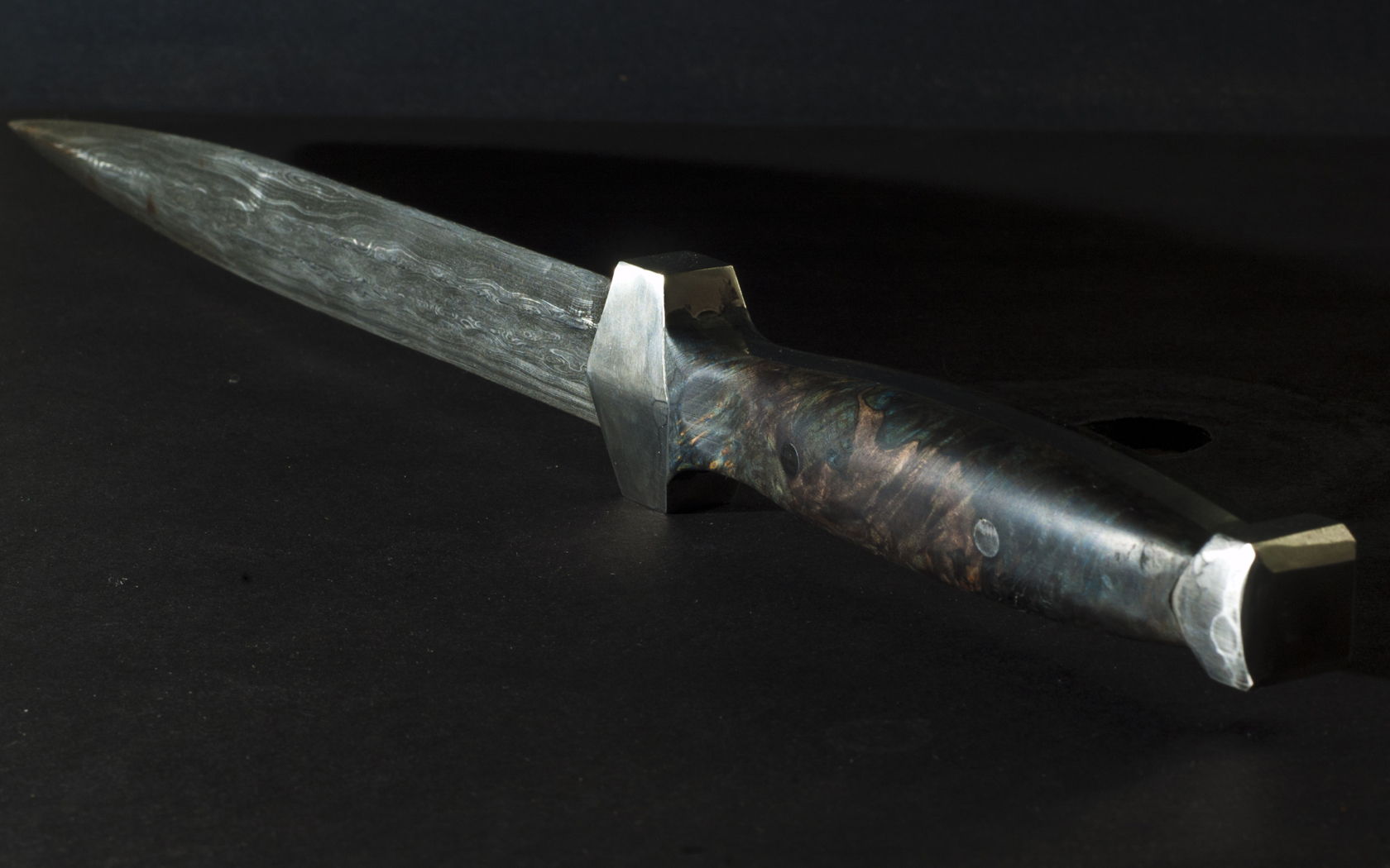 So for Christmas I made V2 a damascus dagger. The steel was beautiful and the handle made of an Alaskan Box Elder burl. Oh my gosh. So just incase you find yourself bored and interested, I posted the process below.