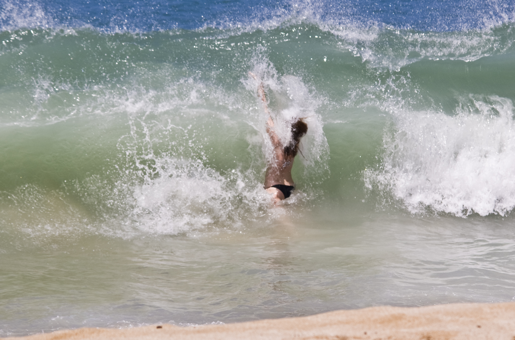 Yesterday for various reasons I was looking back through some old pictures and I found the one below. You're probably looking at it and thinking "IN DA FACE!" but its more than that. Its from a day we went shark cage diving and then to Wiamea bay. The waves were coming in from like 1 to 6 feet. So the small sets would lull the tourists into the water, and the lifeguards would warn "we've had some big sets, if you're not comfortable in the water stay out." Well after hearing the guards tell the same people to keep their toddler from going in the water, and on the 3rd instance calling them out, "What type of horrible parents are you? Seriously. Keep your baby out of the water," we saw the below chick going into the water. She had sunglasses on, we knew this would not end well for her. So we kept a camera on her. Sure enough she proved us right. Something about 3 or so feet came through. You can see the water breaking around her face like being slapped with a bathtub full of water. Classic. FYI, dive under big waves.