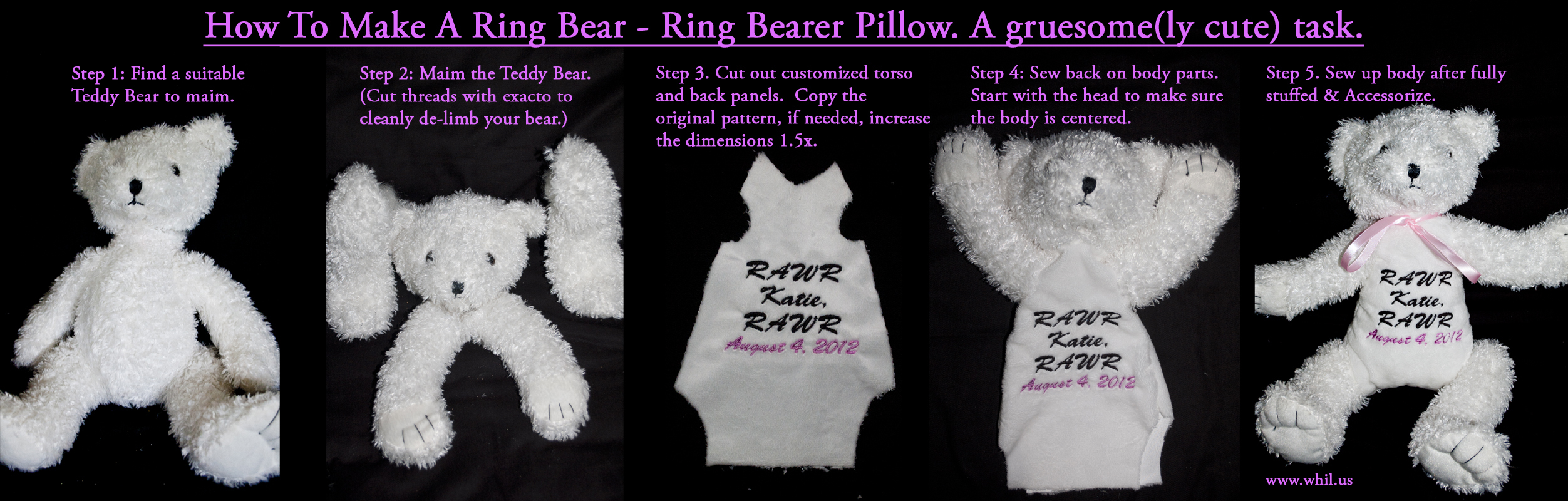 Congratulations Richard and Katie Thompson! Two years after bringing Katie to the islands Richard has married her! The wedding was great! I was a ring bear(er). So I made a Ring Bear(er) Pillow! It was a fun task :D.