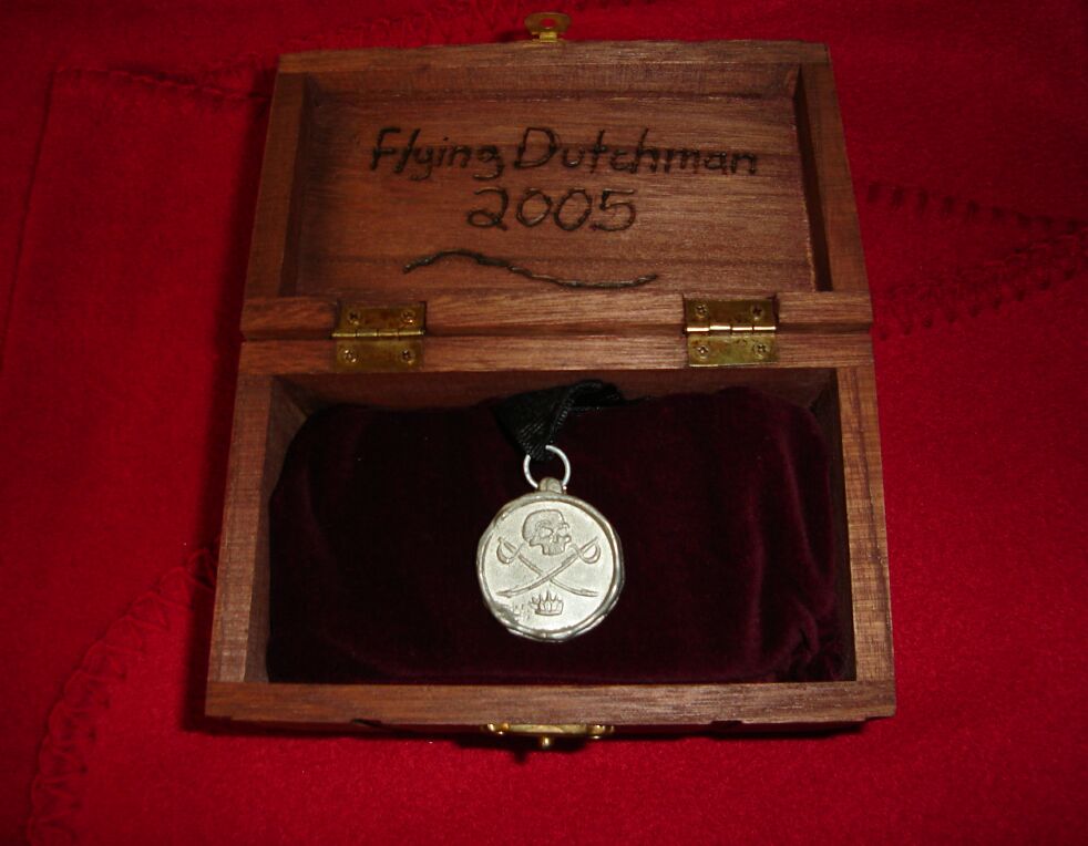 After thoroughly disarming tha parcel we came ta find it contained booty beyond our dreams. And some how in great Neptune's favor I, The Pirate Captain, had received tha highest honor of pirratitude, tha Flying Dutchman Award!